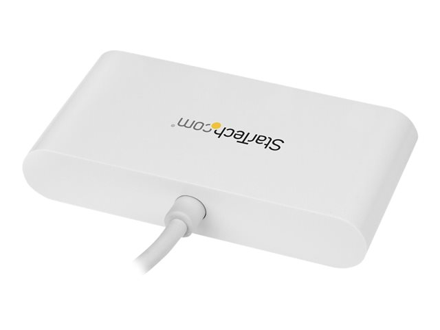 With its compact design, you can take this portable USB-C hub anywhere you go. It's easy to tuck into your laptop bag and only takes up a small amount of desk space when you connect it to your workstation.