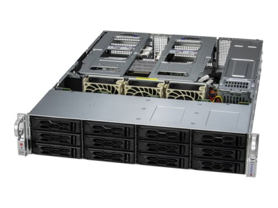 Storage options include 12 hot-swap bays compatible with 2.5 and 3.5-inch drives. Users can enjoy flexible storage configurations with a total hard drive capacity of 1.92 TB utilizing SSDs with NVM Express for rapid data access. Networking capabilities are enhanced with two 10 Gigabit Ethernet ports, facilitating high-speed data transfer. The server's sturdy rack-mountable design, coupled with built-in redundancy features, like dual power supplies and multiple fans, ensures consistent performance.