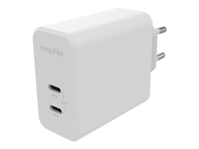 mophie speedport 67 - Strømadapter - 67 watt - Fast Charge, PD - 2 utgangskontakter (24 pin USB-C) - hvit - Europa