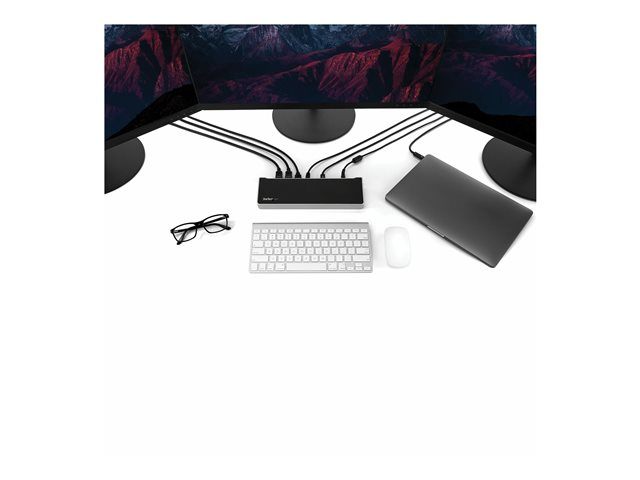 This triple-4K dock for Mac, Windows and Chrome USB-C laptops?helps you take productivity to a whole new level. With three 4K video connections, 100W Power Delivery, and 5x USB 3.0 ports, the USB-C dock is perfect for your MacBook, Dell XPS, Chromebook or other USB-C laptop requiring additional ports.