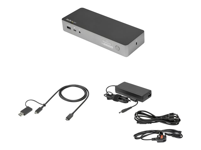 Transition from the legacy USB-A (USB 3.0) to the USB-C with this certified universal laptop docking station for USB-C and USB-A laptops. The USB-C dock features 100 W power delivery 3.0, dual HDMI and/or DisplayPort monitors, fast-charge, and both USB-C and USB-A peripheral ports.