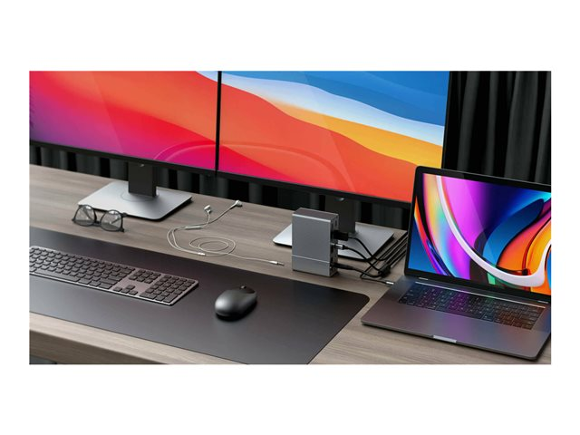 The HyperDrive GEN2 14-port Thunderbolt 3 Docking Station is a powerful, enterprise-level Dock featuring 14 ports and boasts 2x faster refresh rate, 2x faster data transfer speeds and 2x faster power delivery charging. One TB3 downstream port provides 40 Gbps data transfer and 15 W of power for any TB3 peripherals while the one TB3 upstream port supplies 85 W power delivery to the host computer. It allows dual 4K 60 Hz display support for MST enabled devices, and offers Gigabit Ethernet, Digital Coaxial and Optical Toslink audio. Additionally, you can daisy chain six TB3 Docks or devices to HyperDrive.