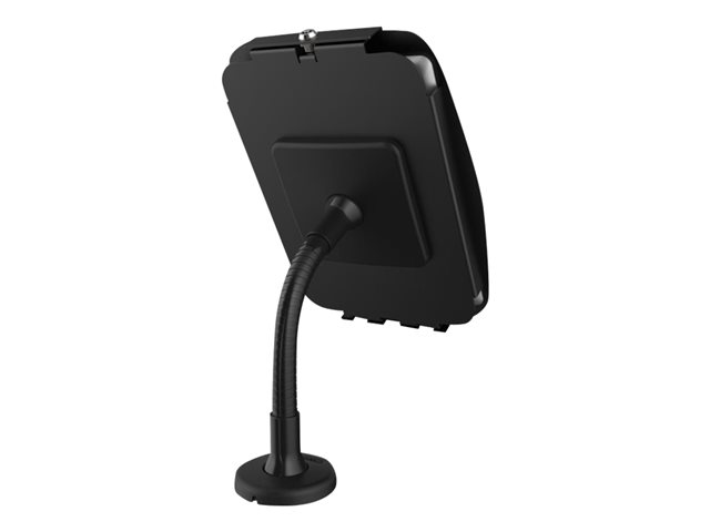 Our Flex Arm stand can be mounted on any flat surface, counter-top or to a wall for use as a secure interactive display or kiosk with a bendable arm that is great for corners and where counter space is limited. Limited cable management is available through the mount and arm of the stand and there is an adhesive no-screw base add-on available.