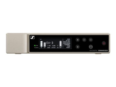 The Sennheiser EW-D EM (S1-7) receiver offers a solution for seamless audio transmission, suitable for various applications including presentations and performances. Featuring a frequency range of 606.2 - 662 MHz, it ensures clear and reliable performance with audio quality. The metal housing provides durability while supporting a wide frequency response from 20 - 20,000 Hz, making it suitable for professional settings.