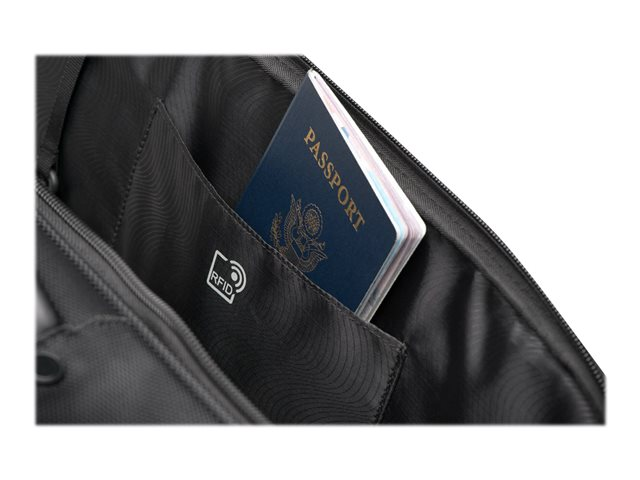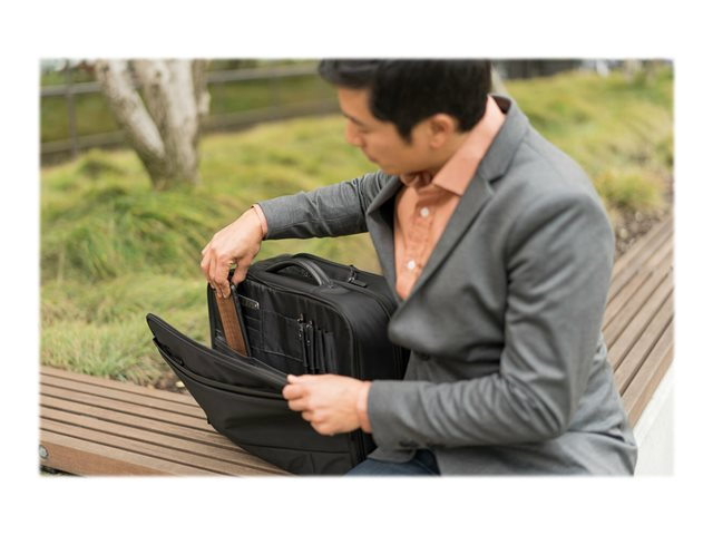 • Quick-access workstation pocket organises your chargers, pens, business cards and more.