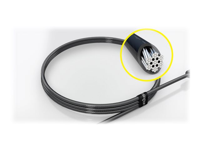• Carbon steel cable resists cutting attempts and anchors to desk, table or any fixed structure